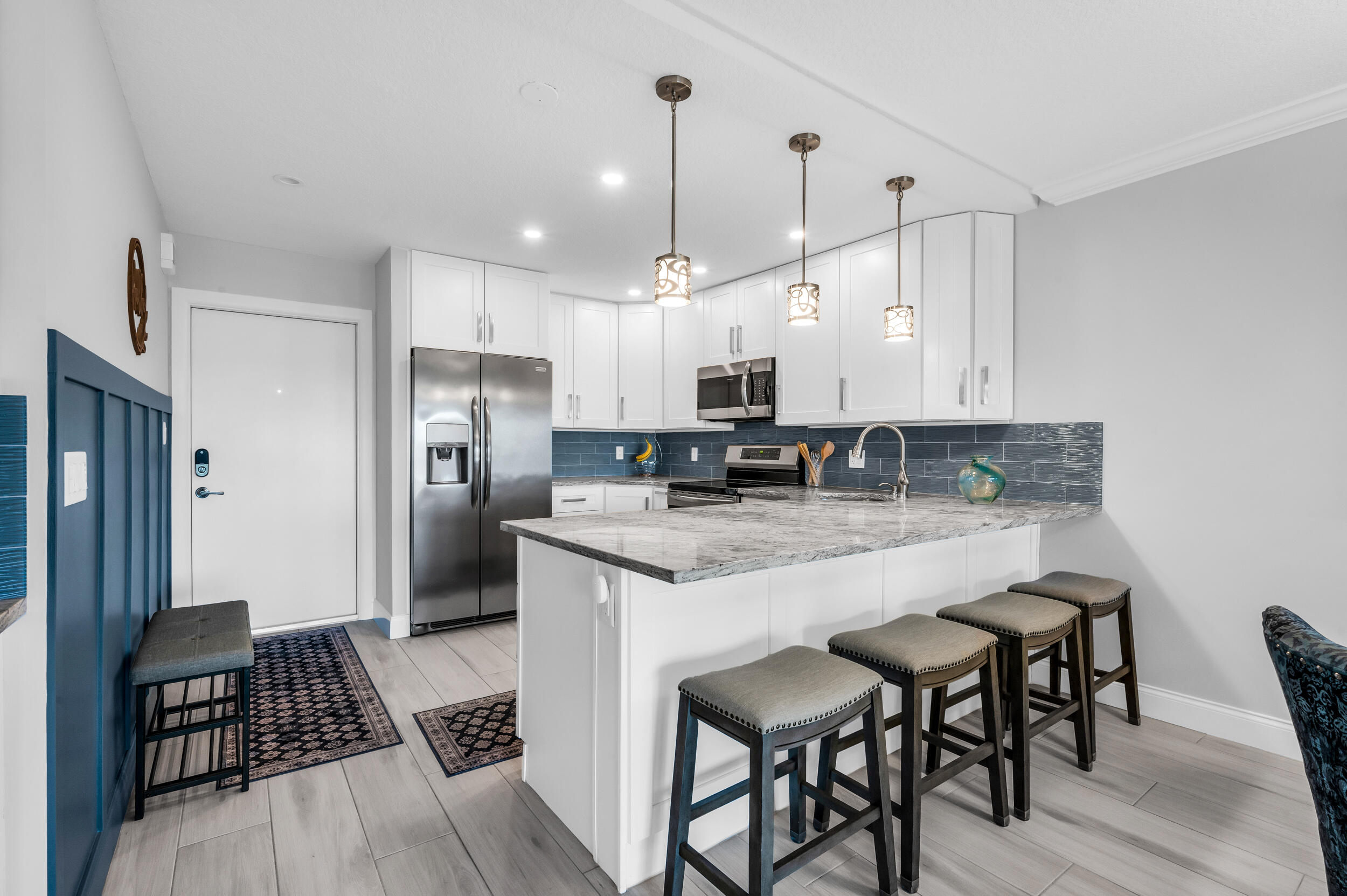 Largest 2 bedroom floorplan in the building beautifully renovated 1,200 sq ft deluxe waterfront residence with both bedrooms overlooking the water. Enjoy tranquil canal views and abundant natural light throughout. Boat dockage up to 35 ft when available, no fixed bridges. The unit has been updated with a modern kitchen featuring expanded cabinetry, quartzite countertops, and a dedicated coffee bar, along with renovated bathrooms and wood look ceramic tile flooring that flows seamlessly to the private balcony. Seller to satisfy the special assessment at closing. All furnishings included, offering a move in ready opportunity with flexibility for personalization.. This highly desirable deluxe model provides over 20% more living space than standard 2BR units, including an oversized primary closet and thoughtful layout designed to maximize comfort and views. Laundry and additional storage conveniently located on every floor.